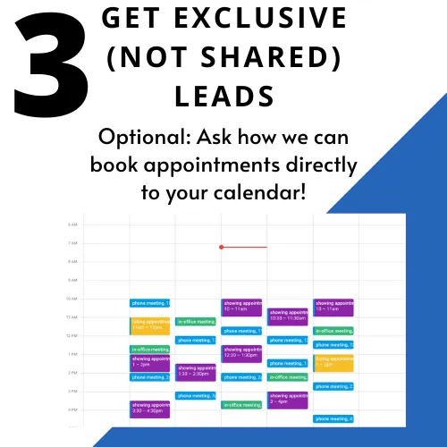 We only book appointments with qualified leads to your calendar. (Timeline, rent vs own, NOT already working with a realtor, etc).